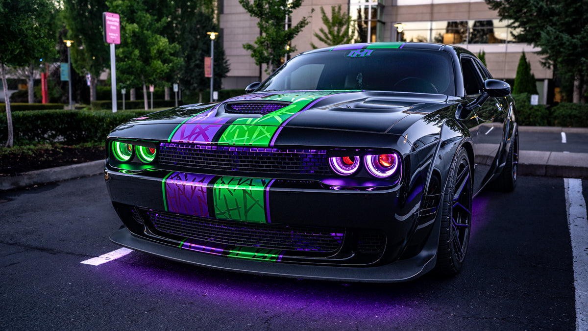 This Joker-themed beast isn’t just loud — it’s violent. The wrap bleeds madness, the stance drips aggression, and the whole build radiates danger. It doesn’t pull up — it storms in, grinning through smoke and chaos, daring anyone to step up… if they’ve got the heart to face the mayhem.